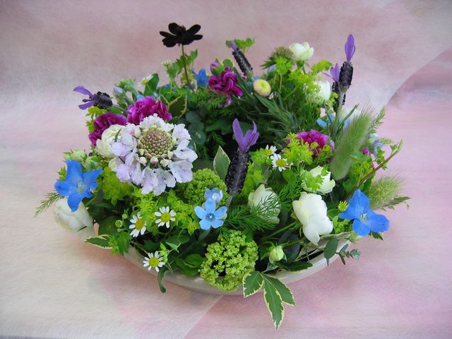 また、お悔やみの花としても贈ることも多くなりました。亡くなられて49日(一般的に仏教なら忌明まで)は、派手な色目は避け落ち着いた色合いのお花でまとめるのが良いでしょう。キリスト教では、白を基調にされると無難なようです。