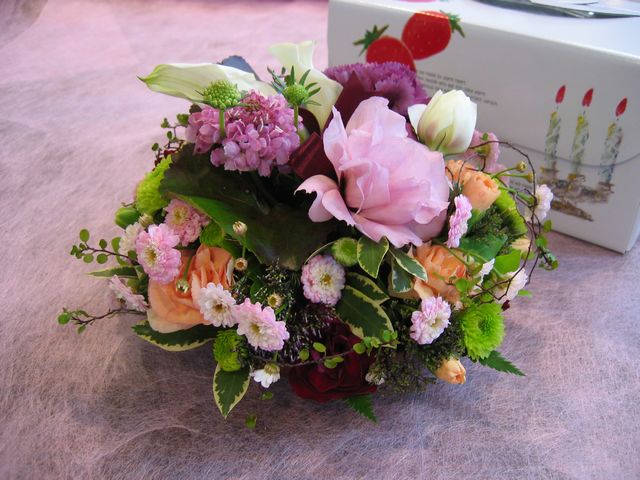 ケーキタイプのアレンジです。お誕生日おめでとう!楽しいパーティーの始まりですね。