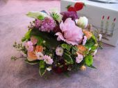 テーブルに置くお花で作ったリースです。結婚式やお食事会に華をそえませんか。