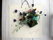 壁に掛けられるよう重くない板をペイントしています。春らしい楽しそうな感じがとてもよく出ています。ウェルカムボードとして玄関に飾っていただいています。 |