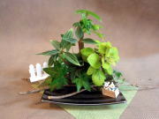 久々に苔玉を作ってみました。ひとつずつではなく、3種類をひとつの苔玉に。大変でしたが、さすが!とてもきれいにできました。アイビーもあしらって、涼を感じる作品が完成しました。